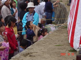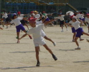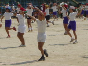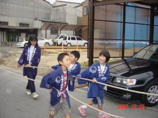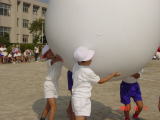 そして玉転がし・・・・と思ったら4人で大玉をかついで競争・・・・・