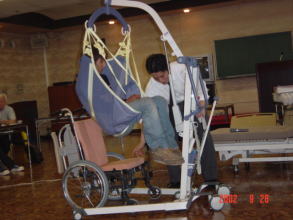 ベッドから車椅子に移動の補助をするリフト、始めて見た♪