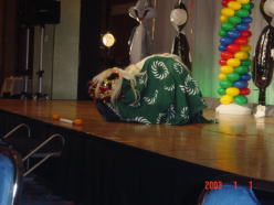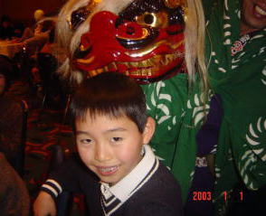 獅子舞に頭をかんでもらうと1年間無病息災なんだそうです。獅子舞さん、もっとパクリとかんでやって〜