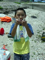 先輩に教えてもらって1時間ほど船の上で釣りを楽しんだしっくん。