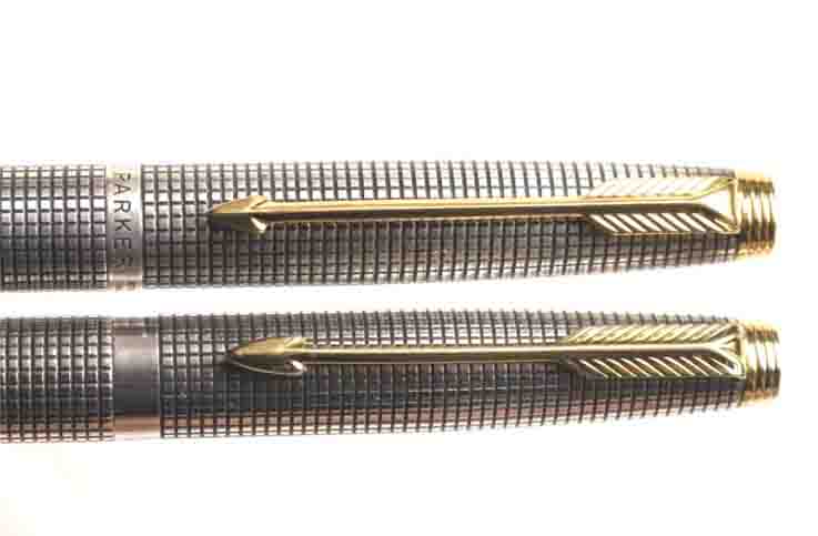 1964年に最初の「Parker 75」が製造されたことは、よくご承知のことと思う。ヤフー、eBayなどのオークションでは、金属製のセクション(首軸)でなくて、セクションリングに「0」マークとtassies(天冠)が平らな物であれば、初期型として高値で取引されている。 下の左の写真は、「Parker 75」のCiselの各種のキャップをはずした状態の物である。最左の万年筆のセクションを観てみると、バレル(胴軸)との境目に金属部分が出ていて、この状態でもセクションが金属製で初期型の物であることが分かる。バレルを外せば(中央と右の写真参照)はっきりとセクションとバレルのジョイント部分が金属製であることが分かる。