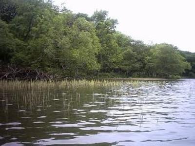 名古屋発9時15分の飛行機のために午後2時から釣りが開始できる計算になり、初日とはいえ釣りのための時間が十分にとれる。 現地へ到着しさっそくフィッシングランド阿寒で入漁証の購入したが・・・、ア、アオコが出始めているよ。 最初から先制パンチを食らった格好になった。 早速入った場所は原野とガレ場の中間点だが、ちょうど大島との狭間になるため観光船やらボートが多く奥へのウェーディングは結構怖いところだ。 案の定ではあるがワンドを中心に行儀良くフライフィッシャーが並んでウェーディングしている。 仕方がないのでガレ場方面へ向かっていき一番端っこに並んでウェーディング。 もちろんライズなんてあるわけないのでニンフを沈めてのリトリーブから開始する。