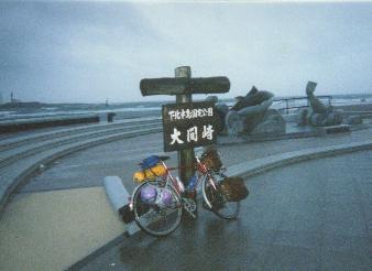 風雨の中、本州最北端、大間崎に到着!!天気のせいか、人はほとんどいなかった。