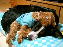 いつでも寝るのは一緒です(−ェ−)zzz・・ ぷくりんがくっついていくんだけどねっ! |
