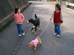 今日はさくちゃん、ひなちゃんと一緒に お散歩なの。シュナお姉ちゃんが嬉しそう♪ |
