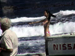 | 中国のモデルさんがポーズを | ここが喜望峰だ | 海は波も高く冷たそうだった |