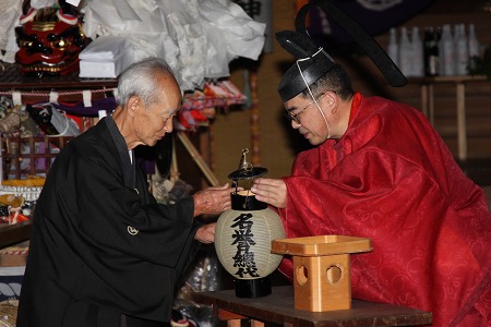 神官 徳原碑に奉納舞 (明けて本祭り 9月8日)