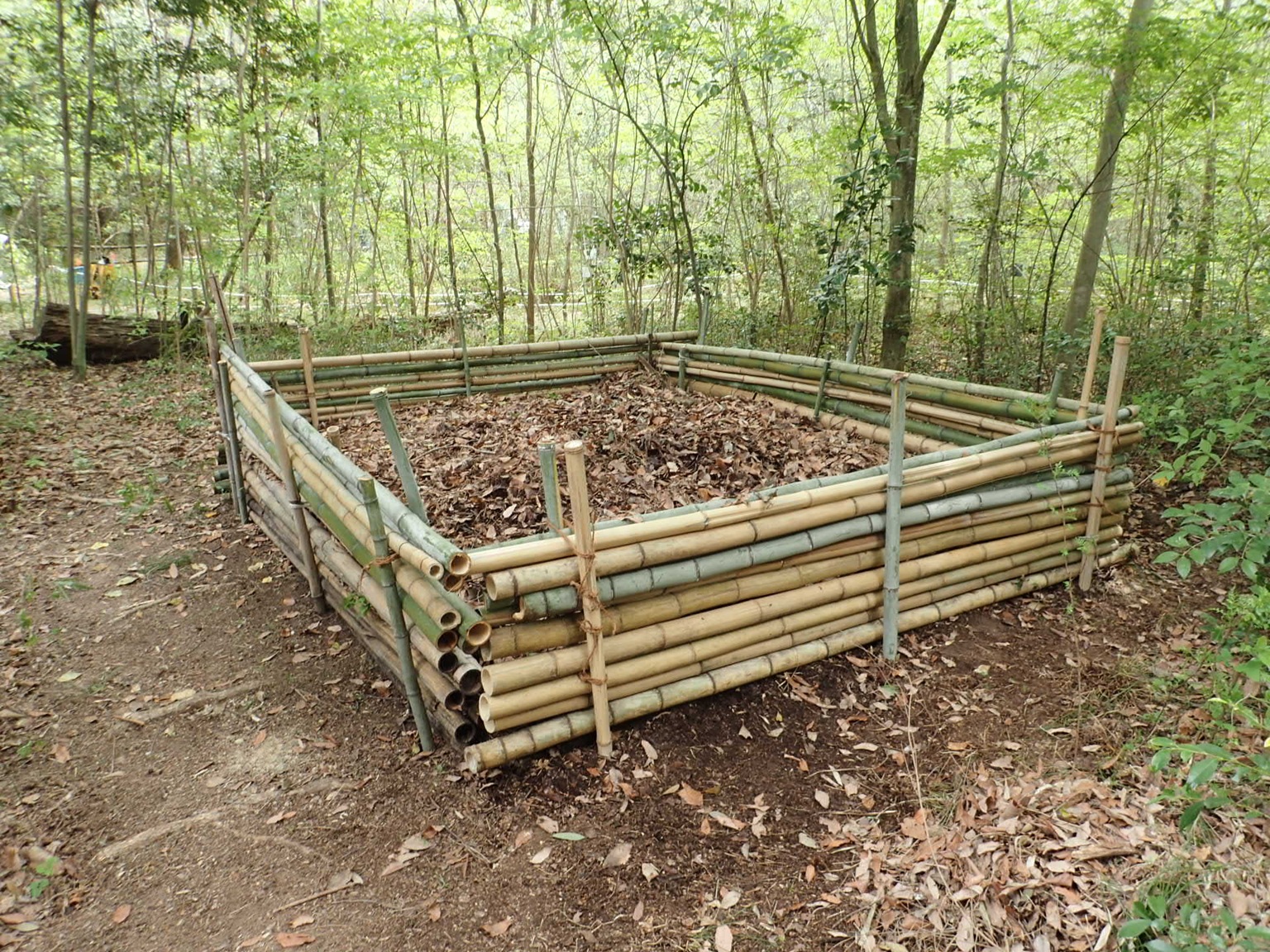 落葉かきで集めた落ち葉を入れるビートルベッド、夏にはカブトムシが卵を産み、幼虫は落ち葉を食べて育ちます。