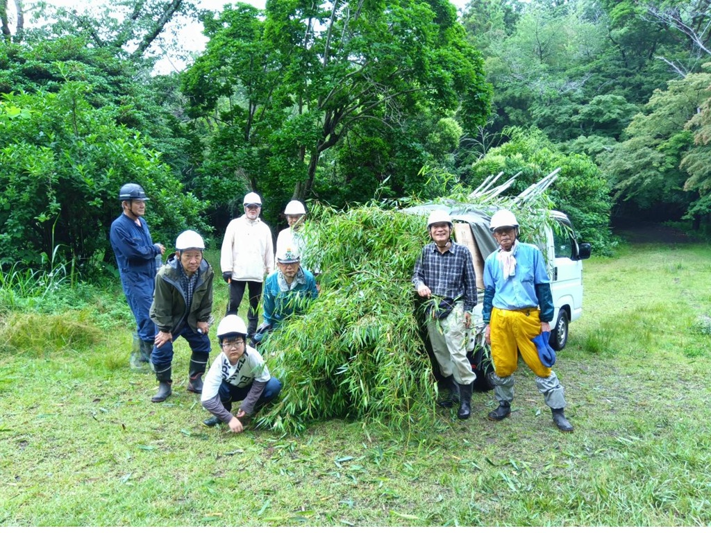 1月24日に2人で草刈機で草を刈り、12月1日に13人で刈った草の片づけと周囲の草刈をしました。