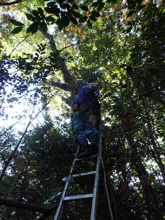 前回とは別の場所でツツジまわりの草刈と日当たり改善のため木の大枝を落としました。