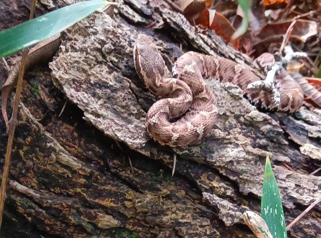 二村山の生きものをご紹介します。マムシです。草刈をしていたら体長30cmほどの現れました。
