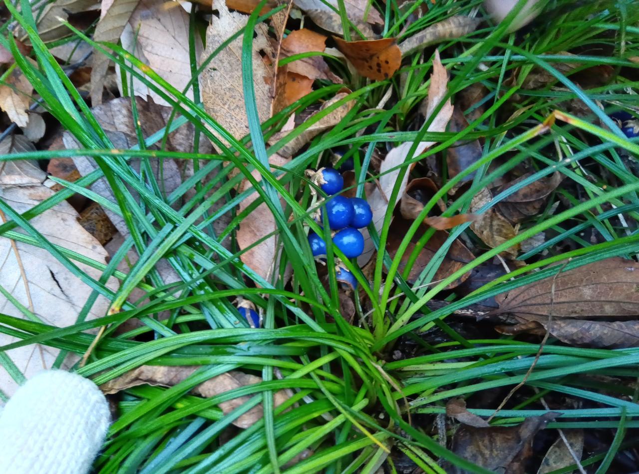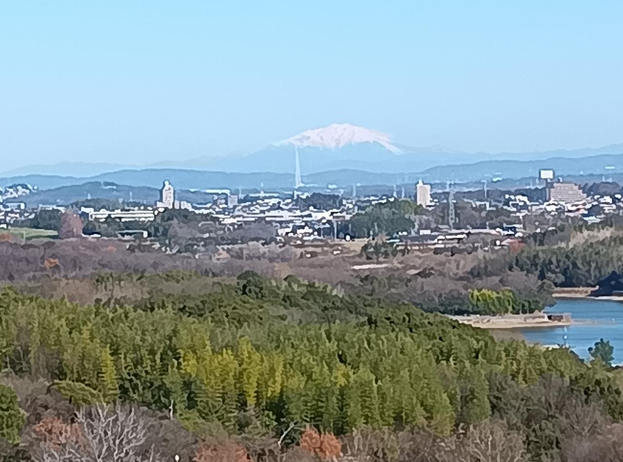 ジャノヒゲの青い実、アズキナシの赤い実、などなど草木の実を見つけて楽しい観察会(主催:二村山自然観察会)。久しぶりに雪をかぶった御岳の姿も。