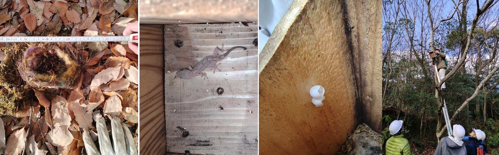 巣箱はヤモリの越冬場所にもなっていて、中にはその卵が産まれているのもありました。